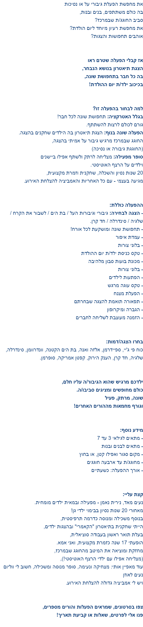 מסיבת צחקוקים אנרגטית מלאה בכייף ומצב רוח, עם צחוק בלתי פוסק ושלל אביזרים מבדרים ומצחיקים!